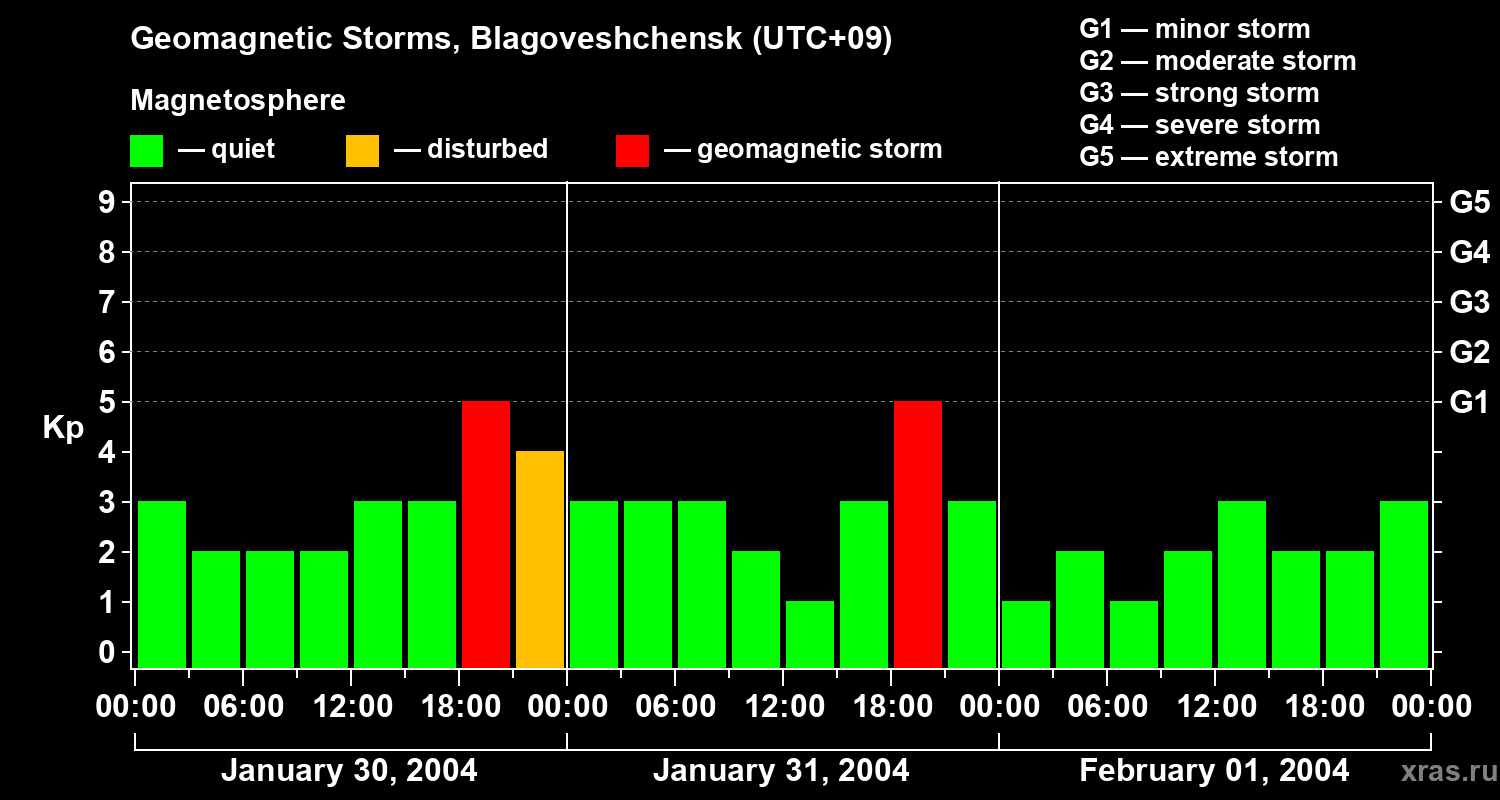 Geomagnetic storms in Blagoveshchensk — Feb 01, 2004
