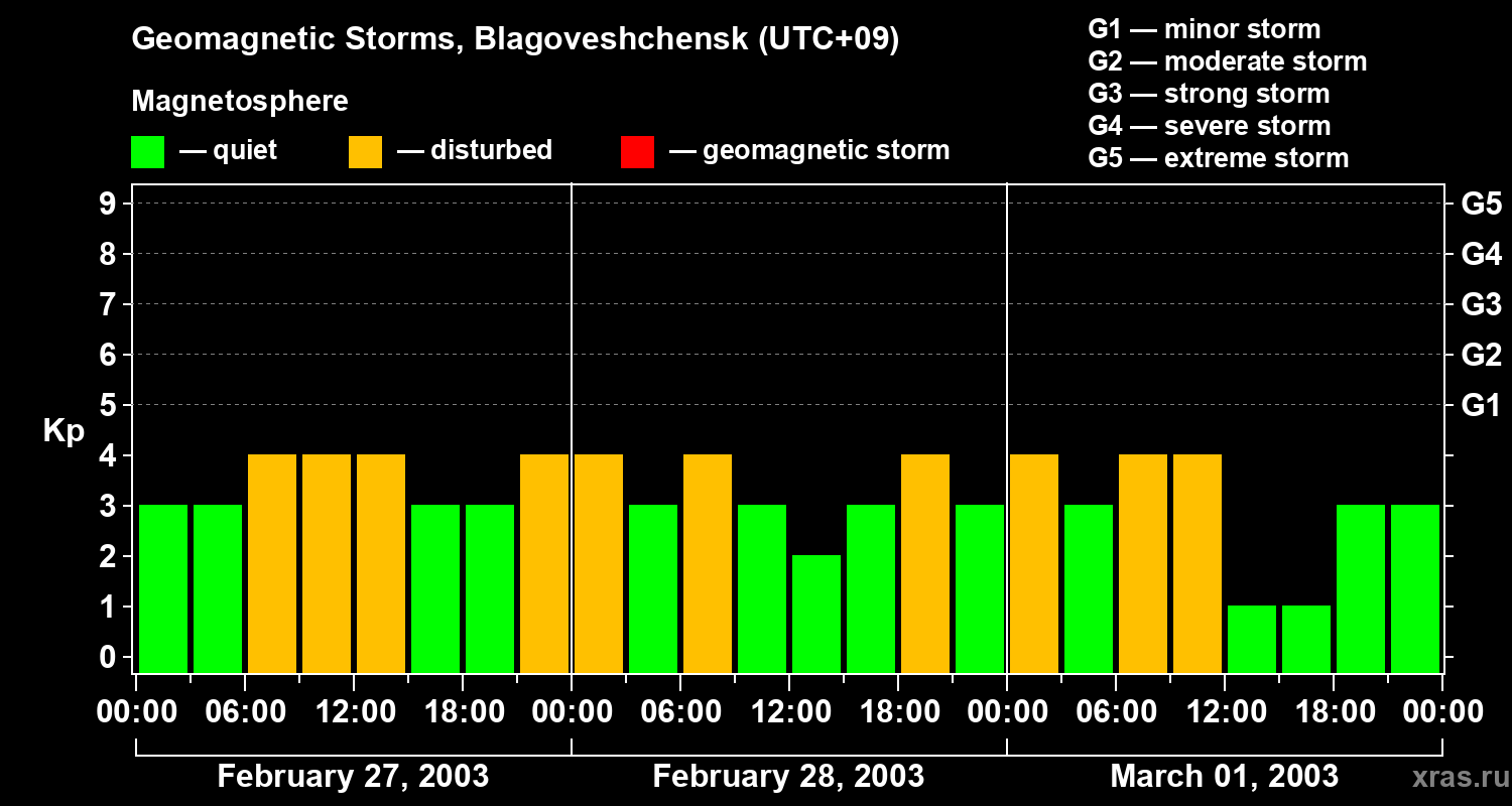 Geomagnetic storms in Blagoveshchensk — Mar 01, 2003