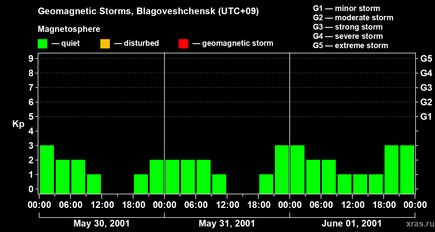 Geomagnetic storms in Blagoveshchensk on Jun 01, 2001