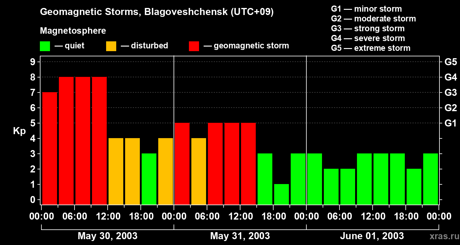 Geomagnetic storms in Blagoveshchensk — Jun 01, 2003
