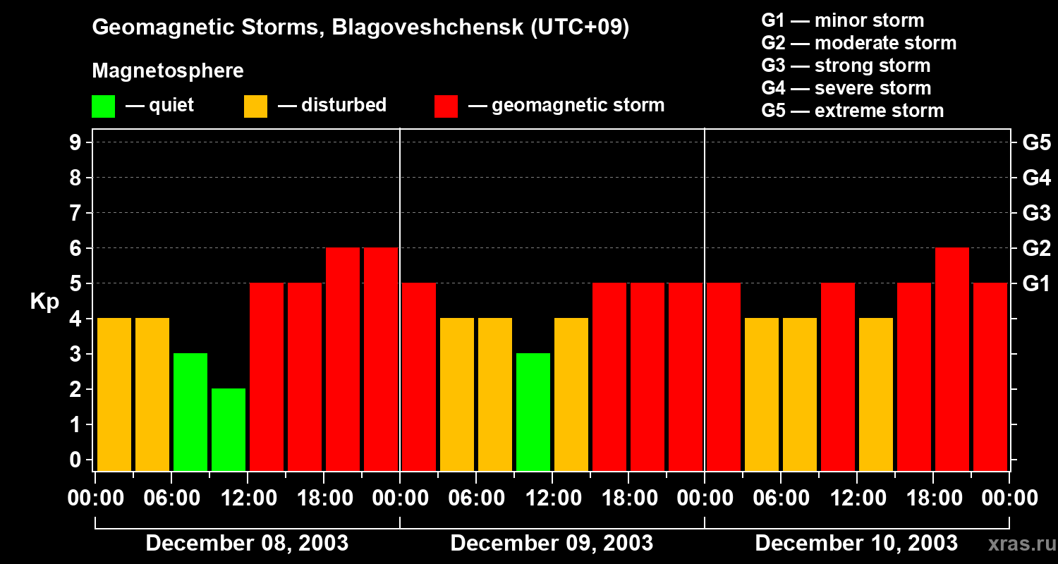 Geomagnetic storms in Blagoveshchensk on Dec 10, 2003