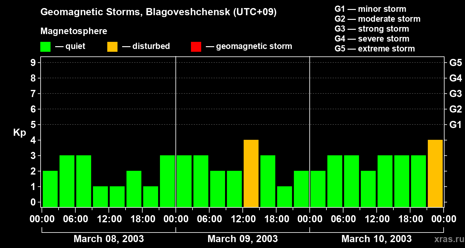 Geomagnetic storms in Blagoveshchensk — Mar 10, 2003