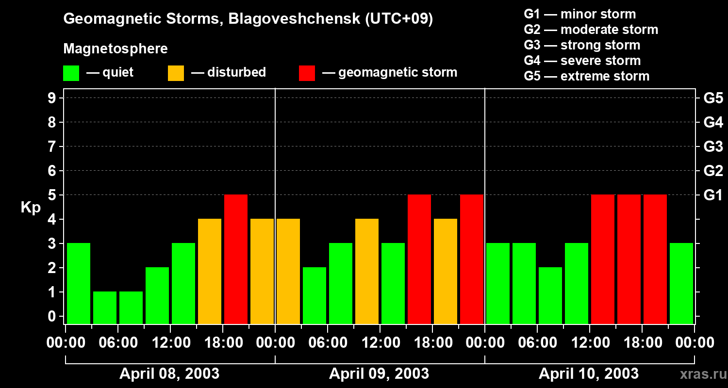 Geomagnetic storms in Blagoveshchensk — Apr 10, 2003