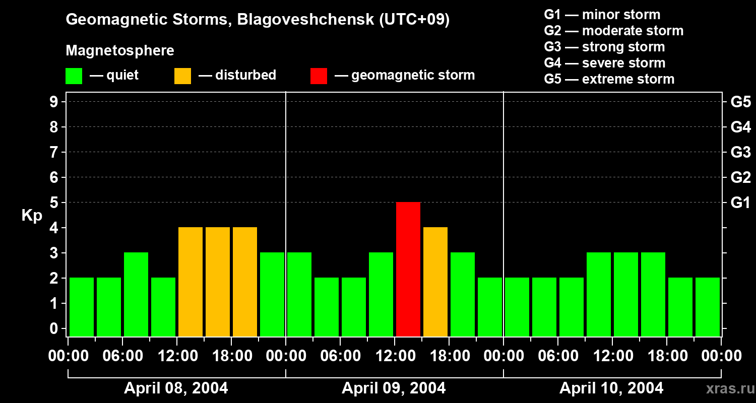 Geomagnetic storms in Blagoveshchensk — Apr 10, 2004