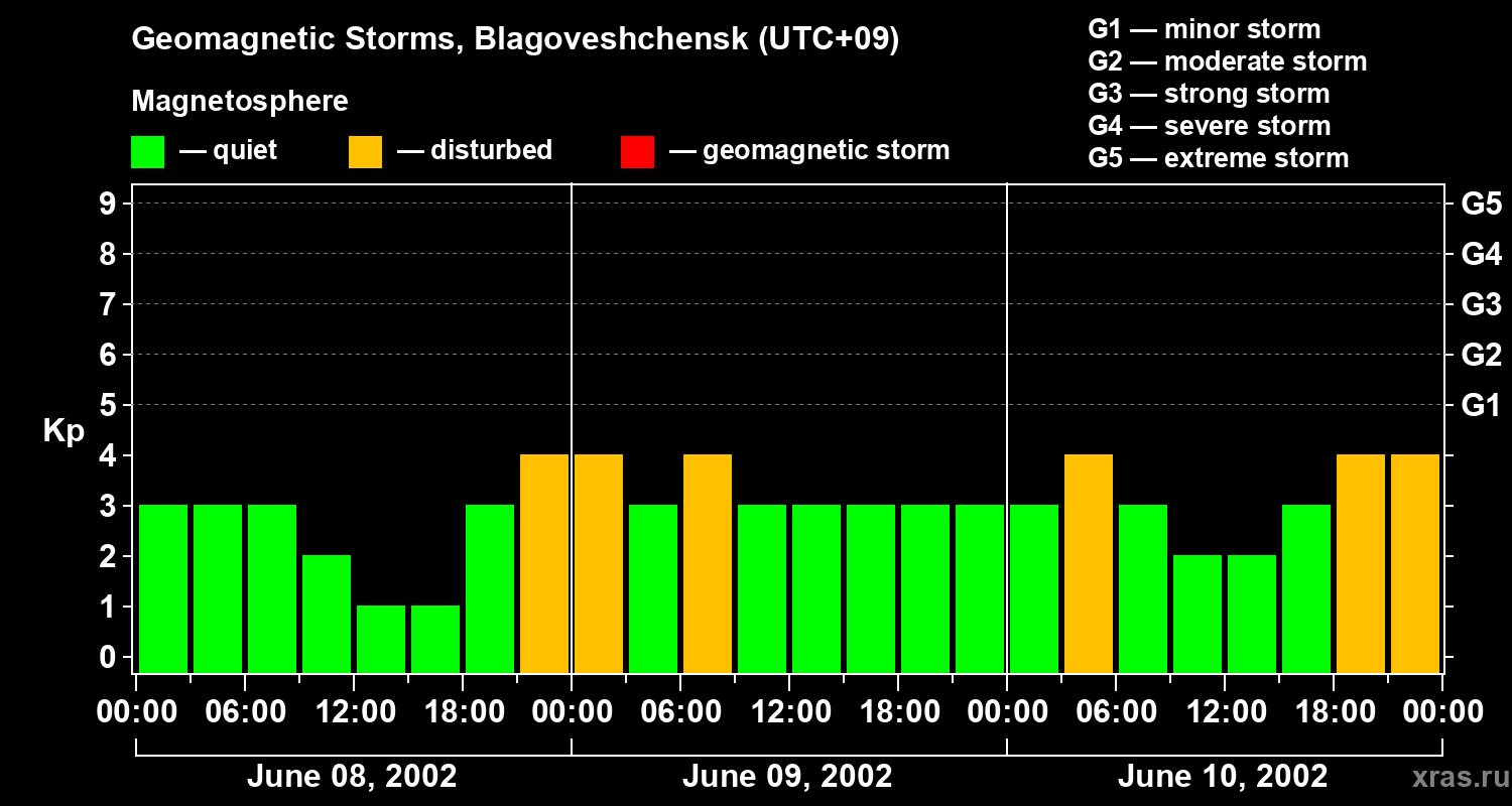 Geomagnetic storms in Blagoveshchensk on Jun 10, 2002