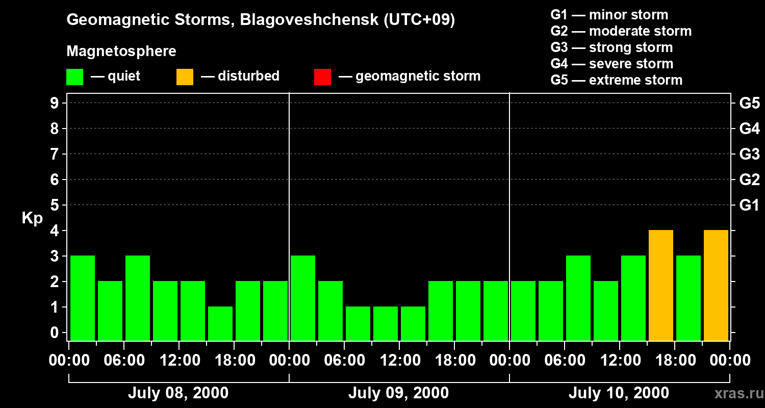 Geomagnetic storms in Blagoveshchensk on Jul 10, 2000