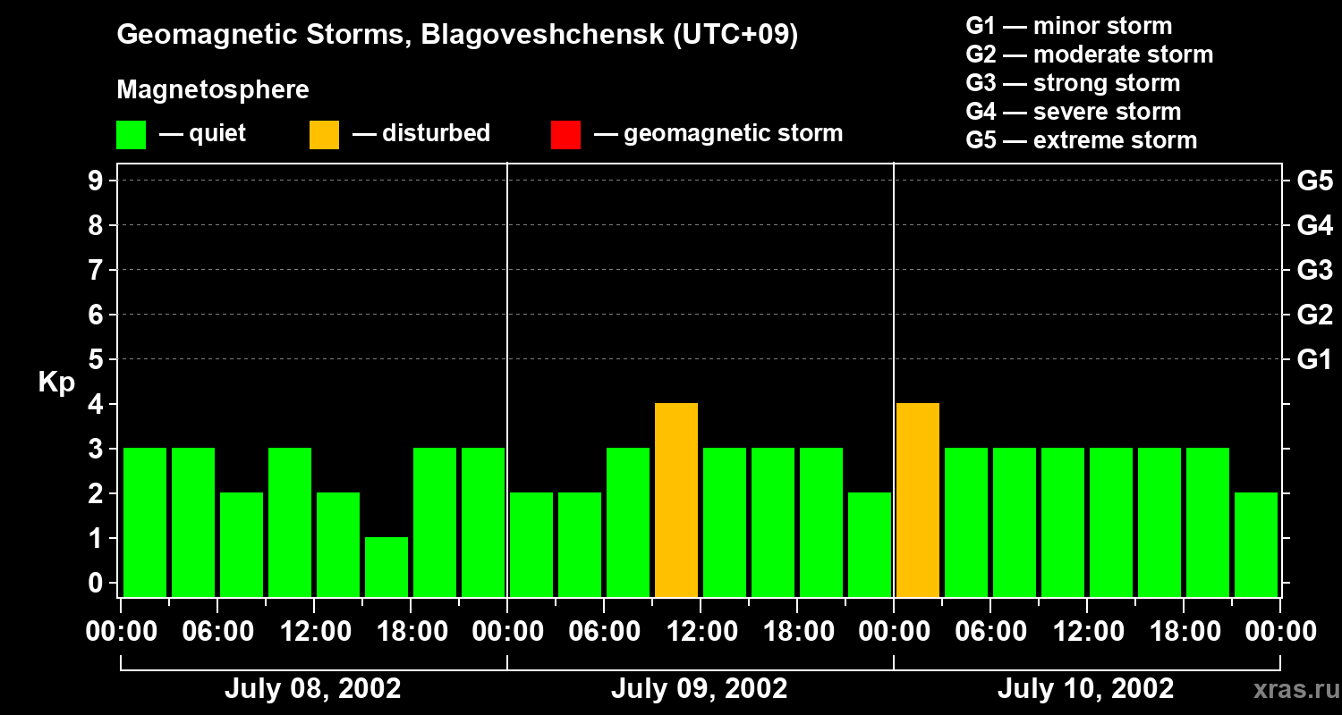 Geomagnetic storms in Blagoveshchensk — Jul 10, 2002