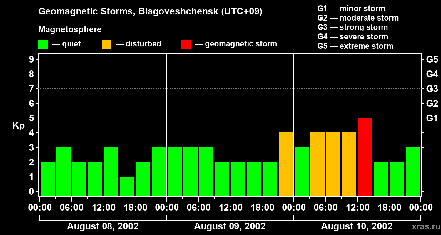 Geomagnetic storms in Blagoveshchensk on Aug 10, 2002