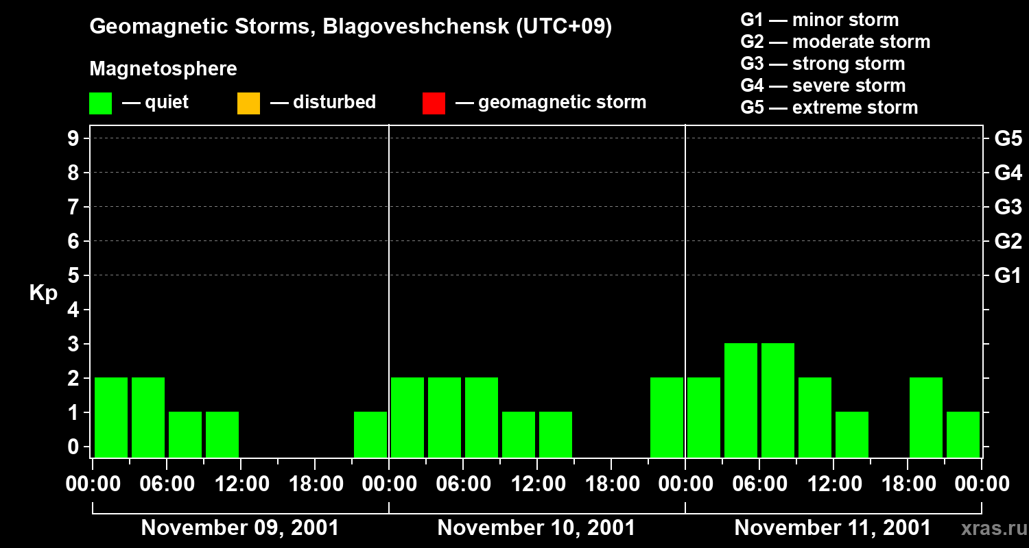 Geomagnetic storms in Blagoveshchensk — Nov 11, 2001