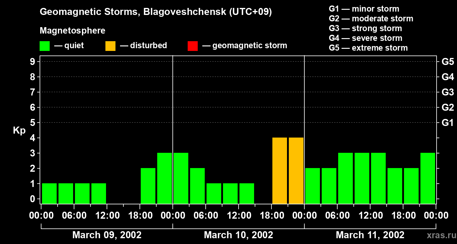 Geomagnetic storms in Blagoveshchensk on Mar 11, 2002