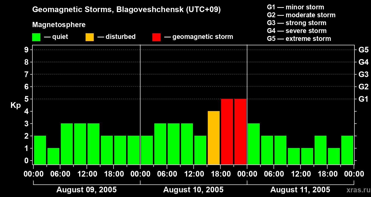Geomagnetic storms in Blagoveshchensk — Aug 11, 2005