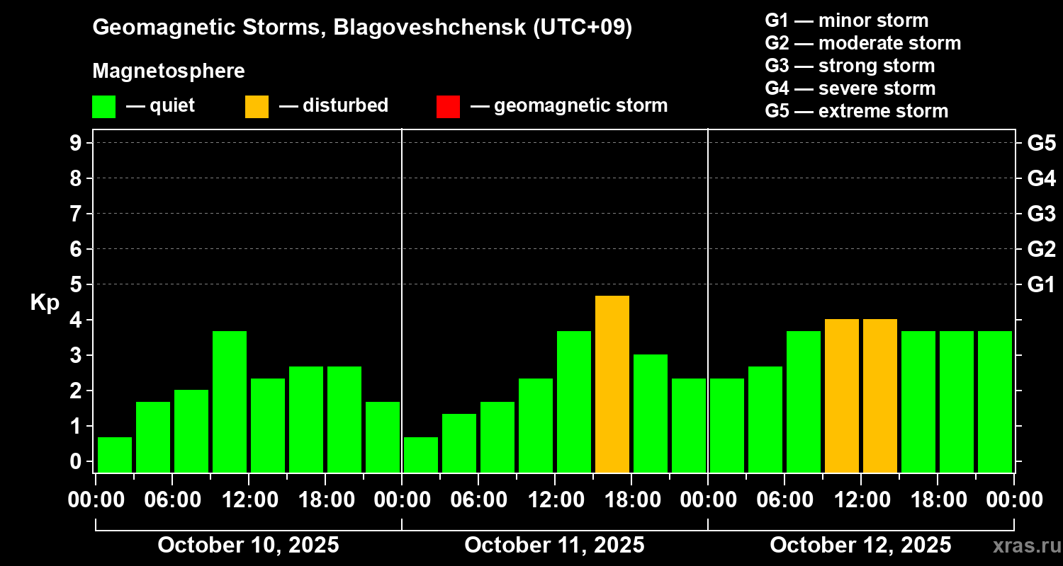 Geomagnetic storms in Blagoveshchensk — Oct 12, 2025