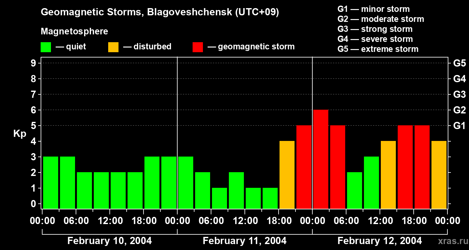 Geomagnetic storms in Blagoveshchensk on Feb 12, 2004
