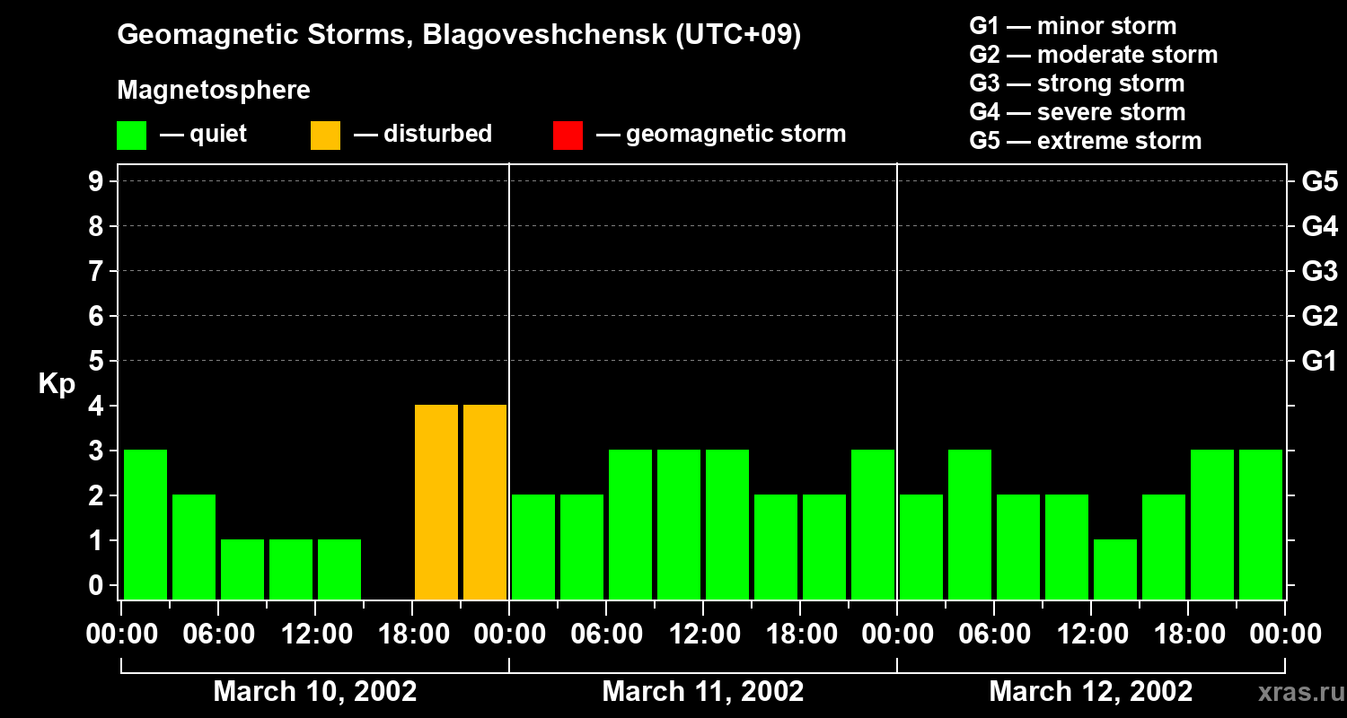 Geomagnetic storms in Blagoveshchensk — Mar 12, 2002