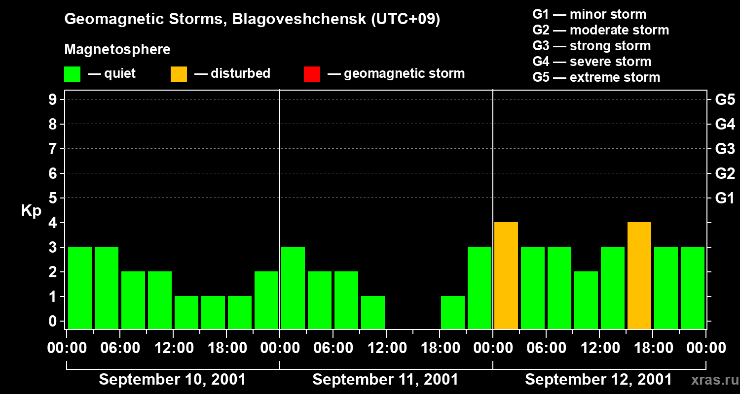Geomagnetic storms in Blagoveshchensk on Sep 12, 2001