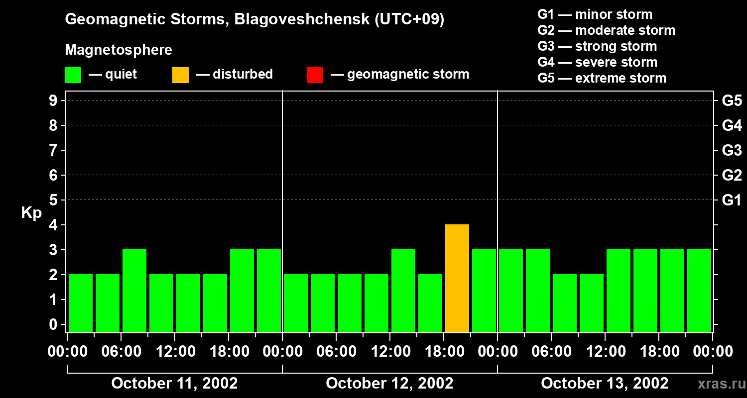 Geomagnetic storms in Blagoveshchensk — Oct 13, 2002