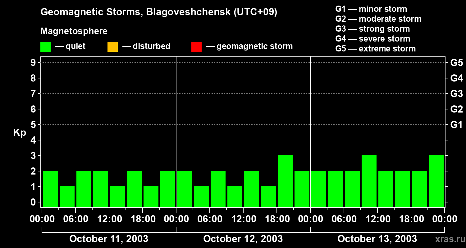 Geomagnetic storms in Blagoveshchensk — Oct 13, 2003