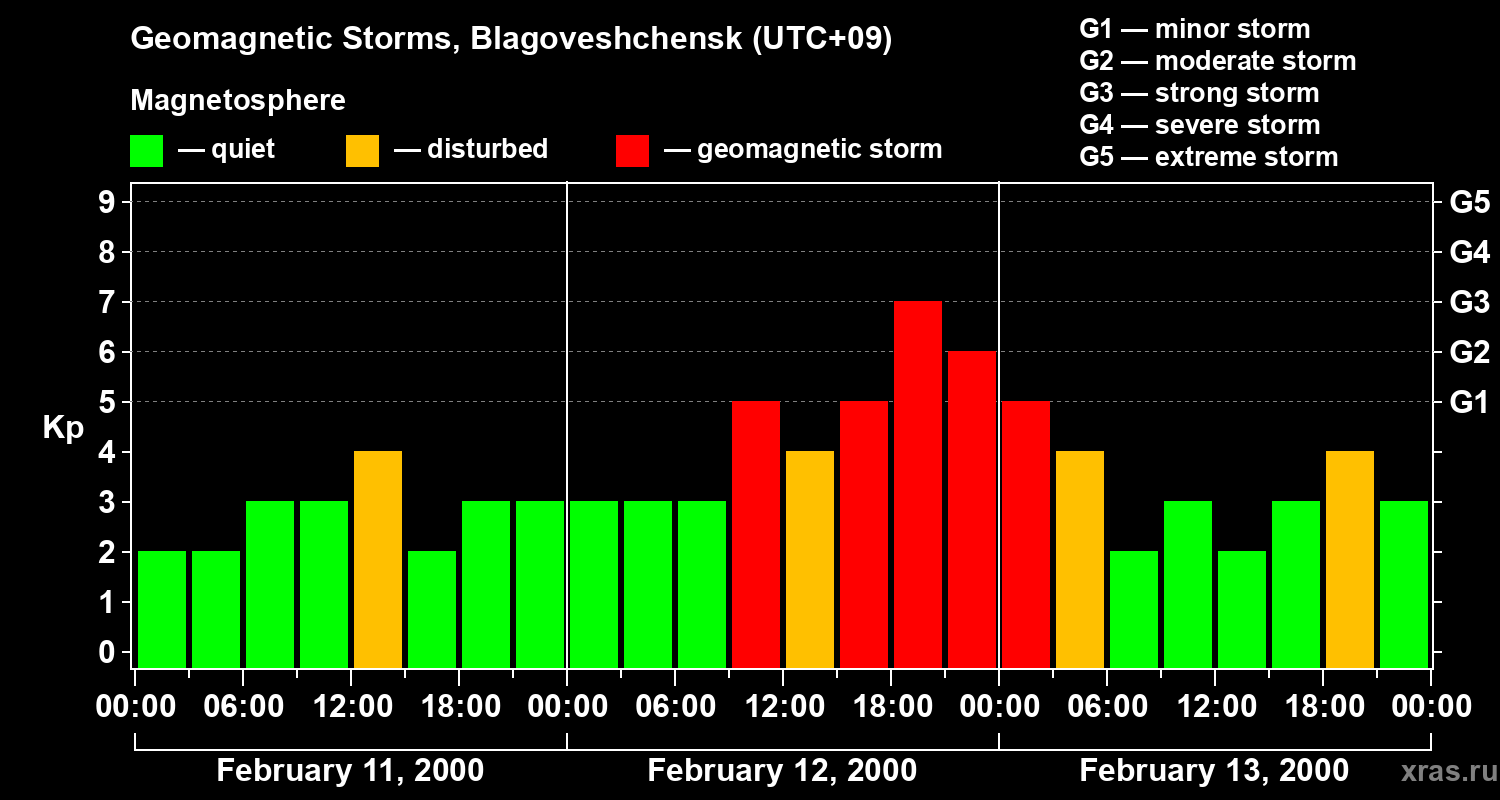Geomagnetic storms in Blagoveshchensk — Feb 13, 2000