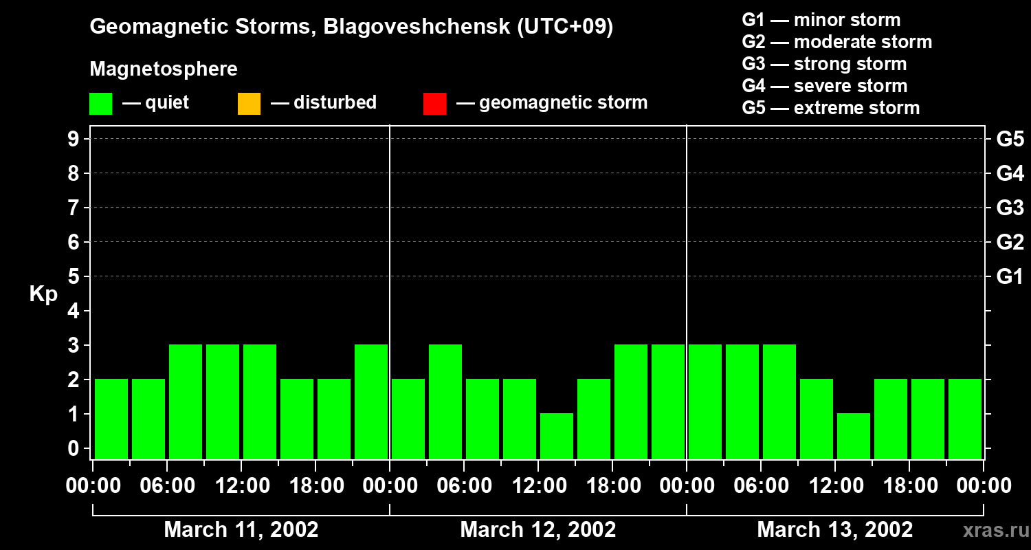 Geomagnetic storms in Blagoveshchensk on Mar 13, 2002