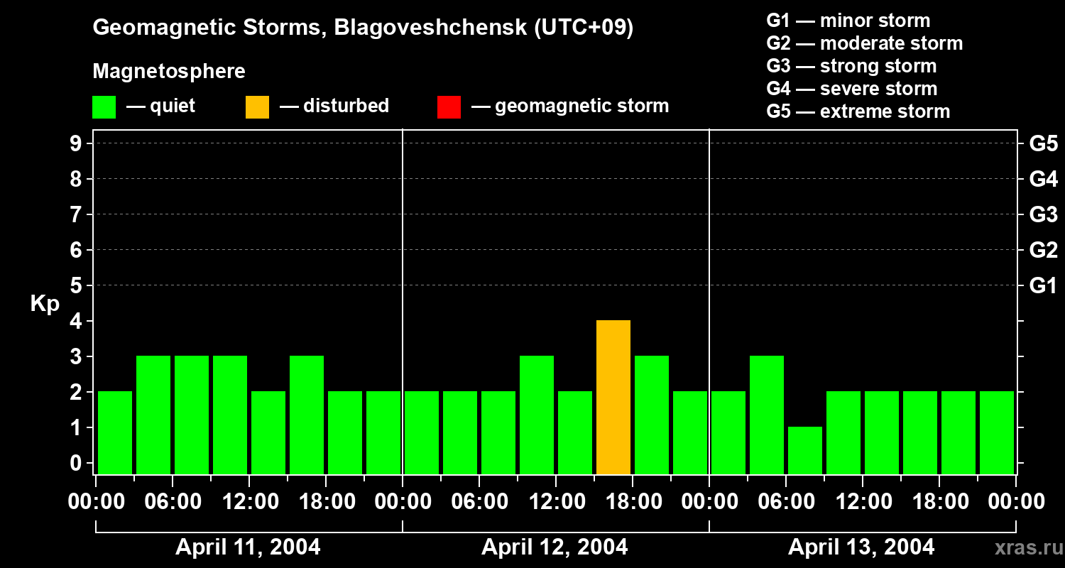 Geomagnetic storms in Blagoveshchensk — Apr 13, 2004