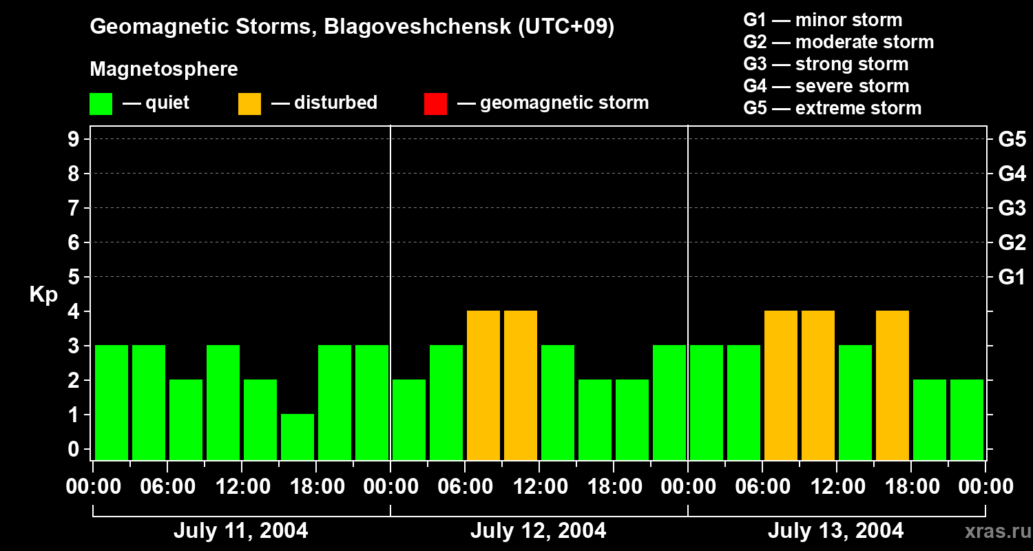 Geomagnetic storms in Blagoveshchensk on Jul 13, 2004