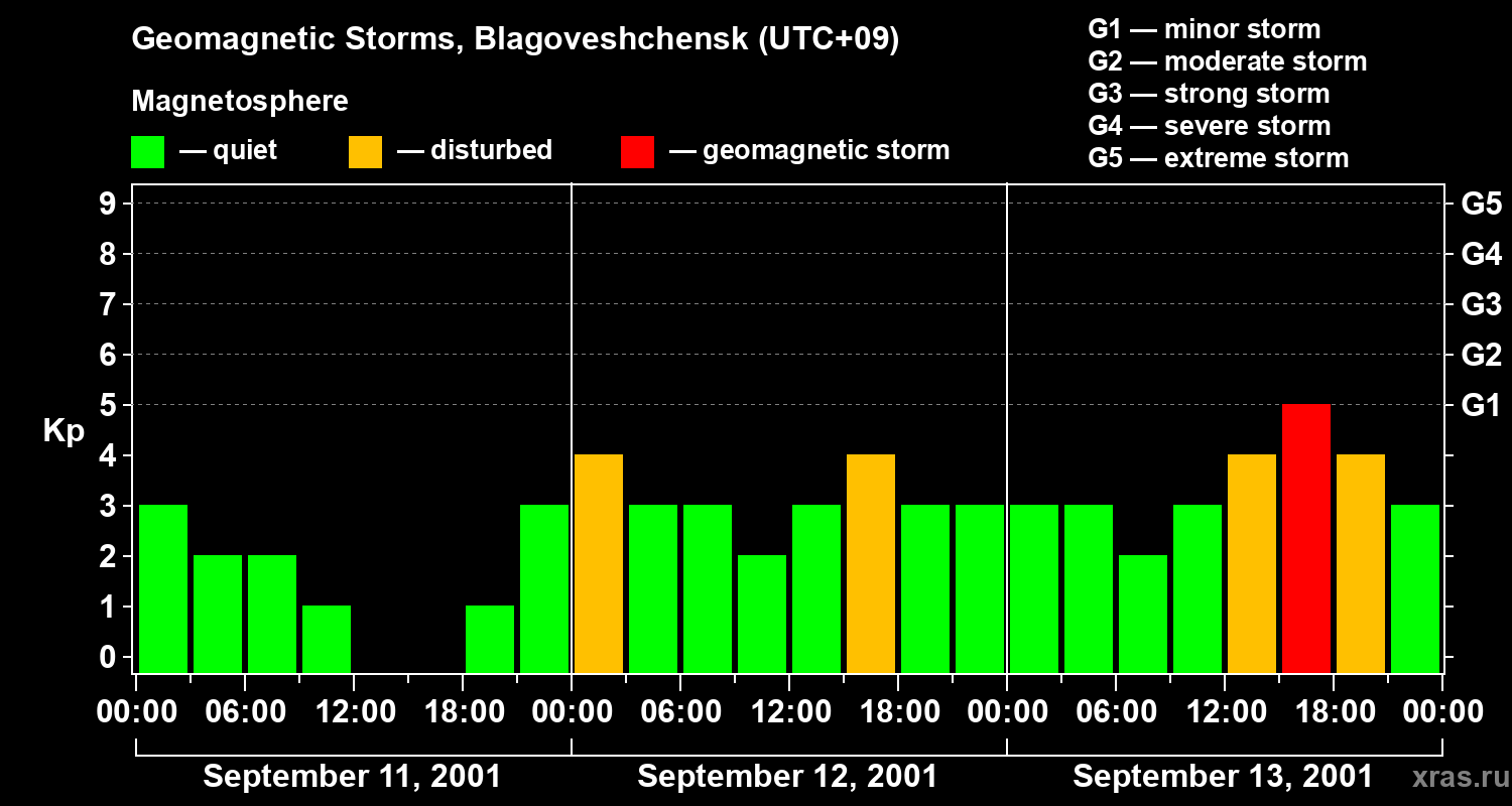 Geomagnetic storms in Blagoveshchensk — Sep 13, 2001