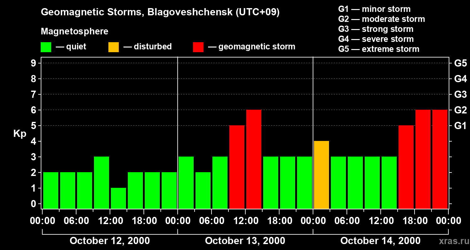 Geomagnetic storms in Blagoveshchensk — Oct 14, 2000