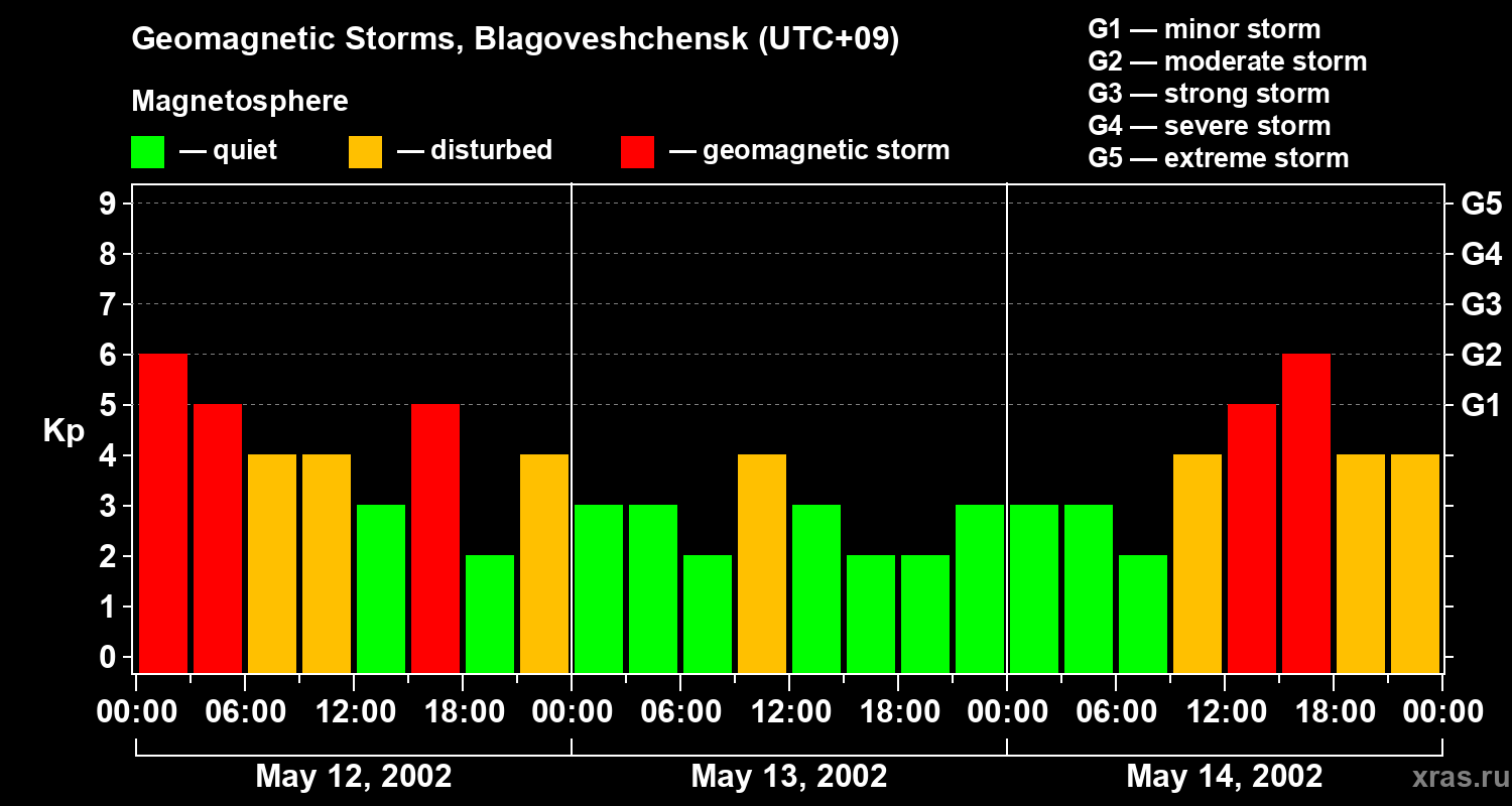 Geomagnetic storms in Blagoveshchensk on May 14, 2002