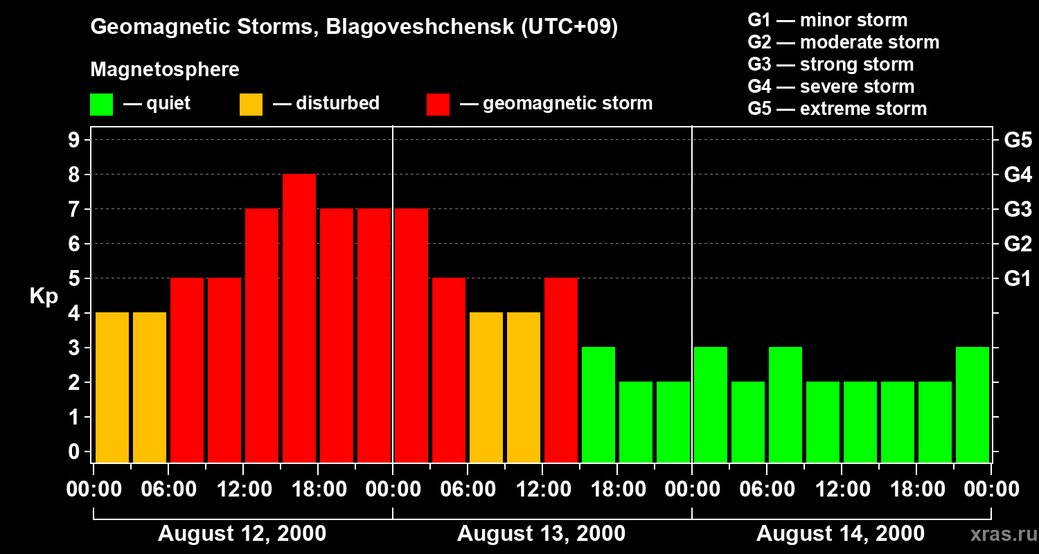 Geomagnetic storms in Blagoveshchensk in August 2000