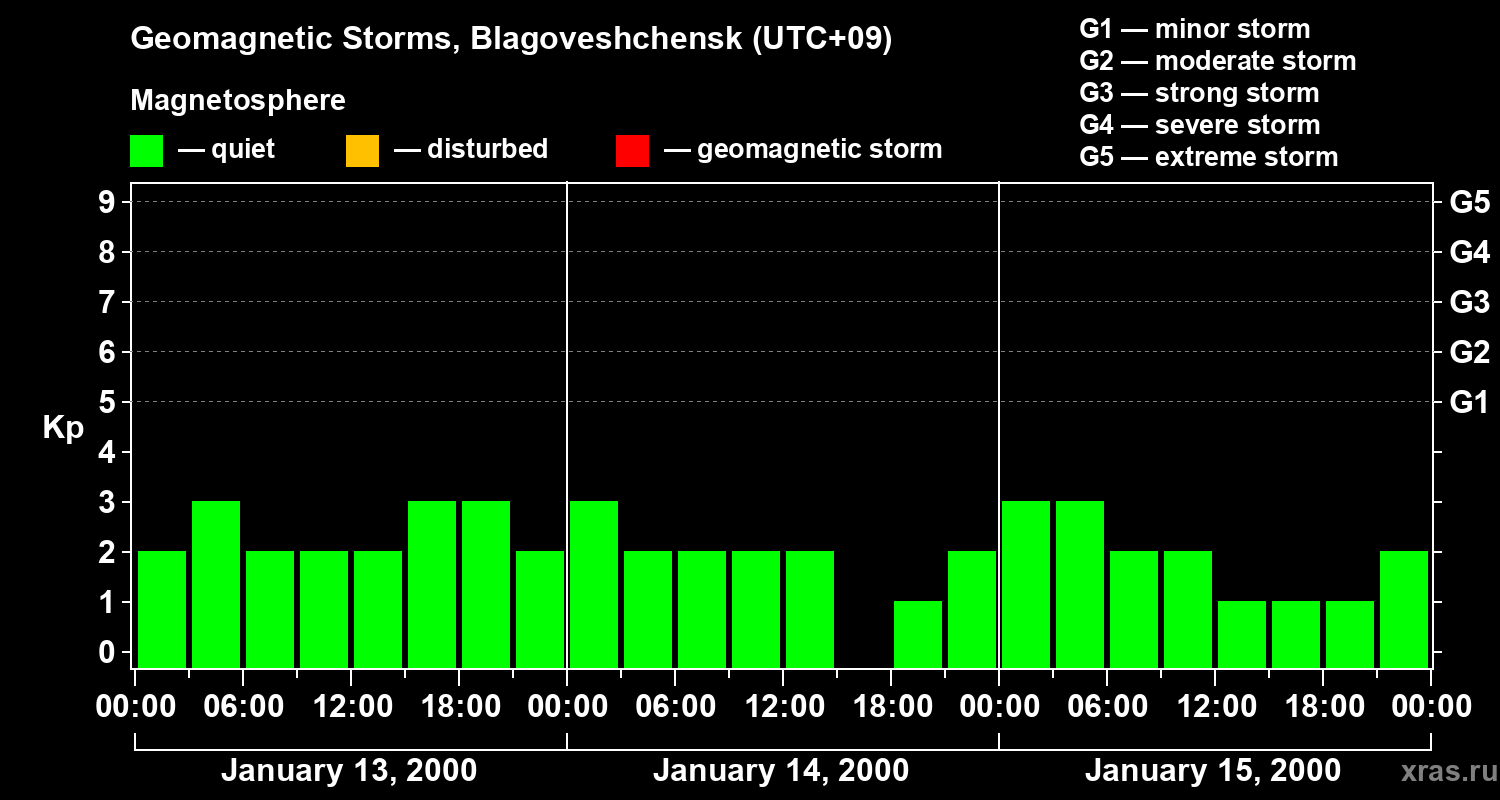 Geomagnetic storms in Blagoveshchensk on Jan 15, 2000