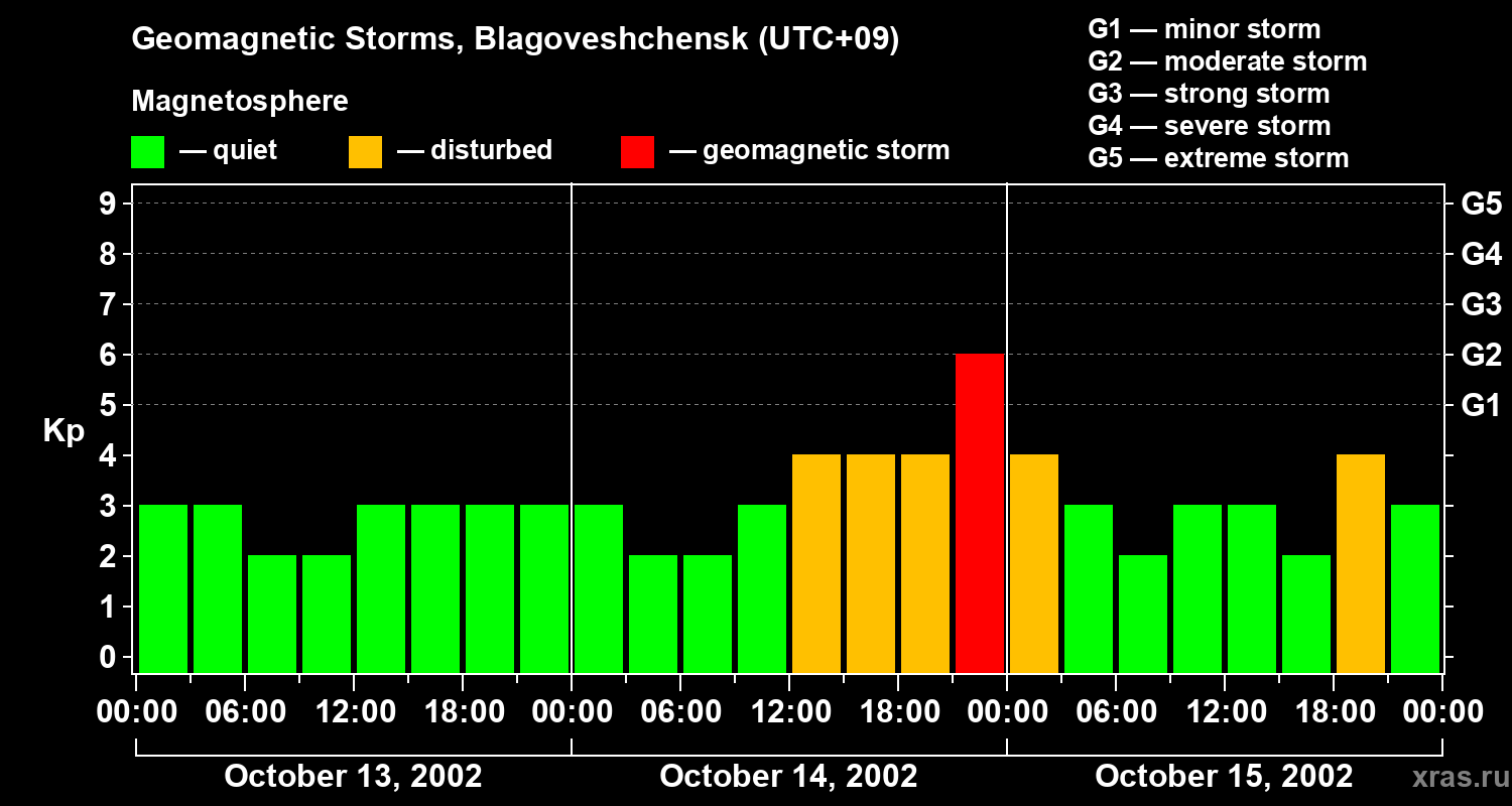 Geomagnetic storms in Blagoveshchensk — Oct 15, 2002