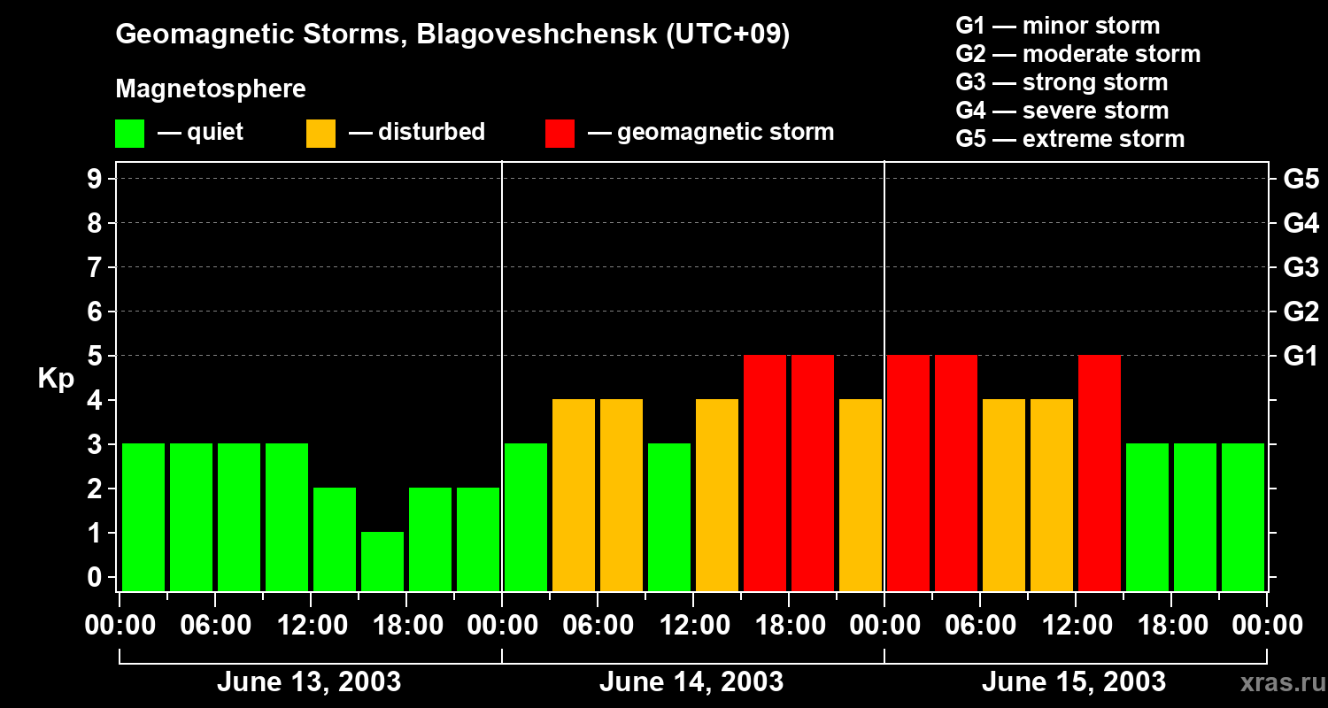 Geomagnetic storms in Blagoveshchensk — Jun 15, 2003