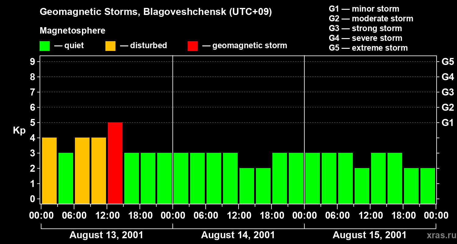 Geomagnetic storms in Blagoveshchensk — Aug 15, 2001