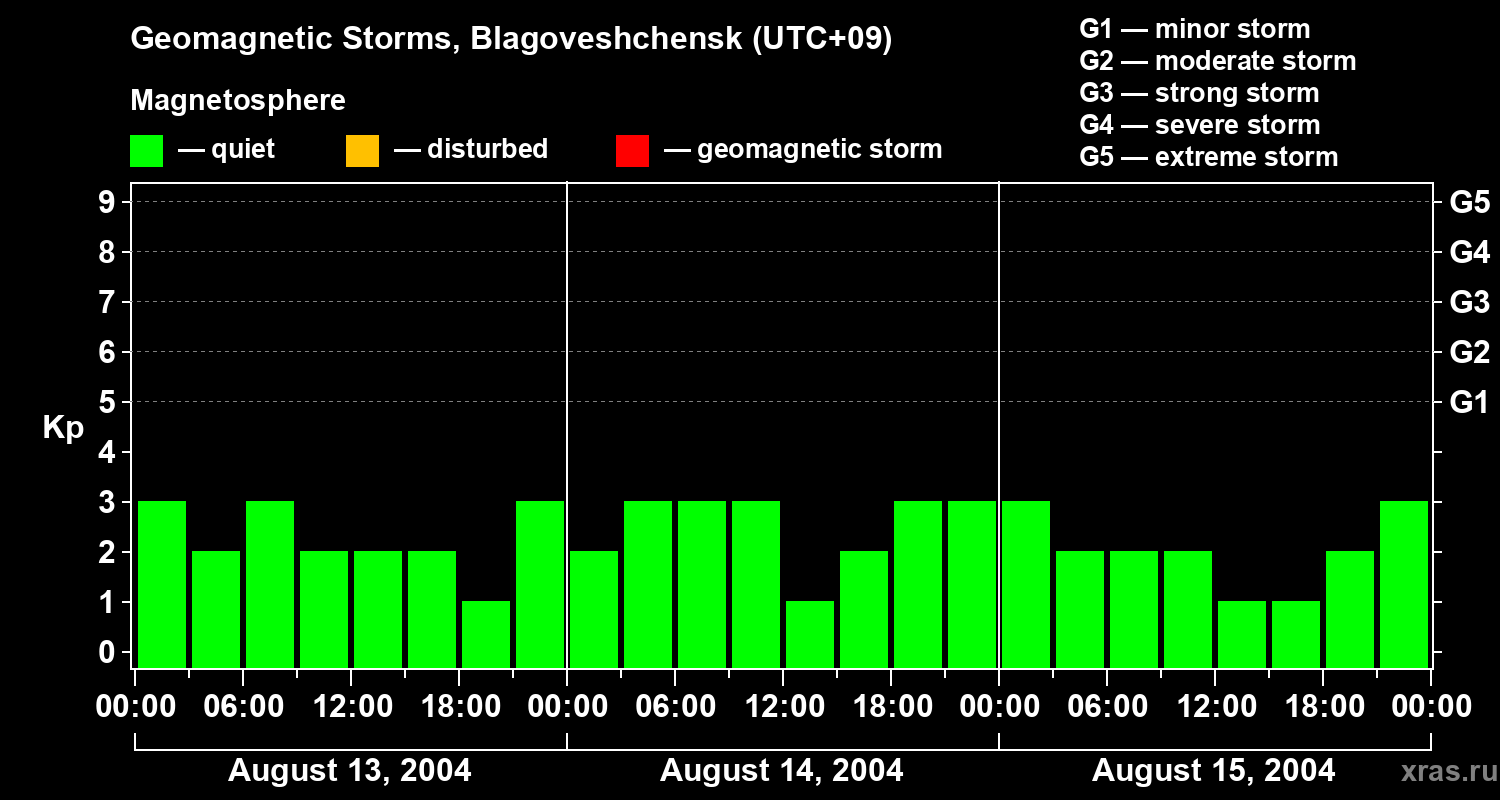 Geomagnetic storms in Blagoveshchensk on Aug 15, 2004
