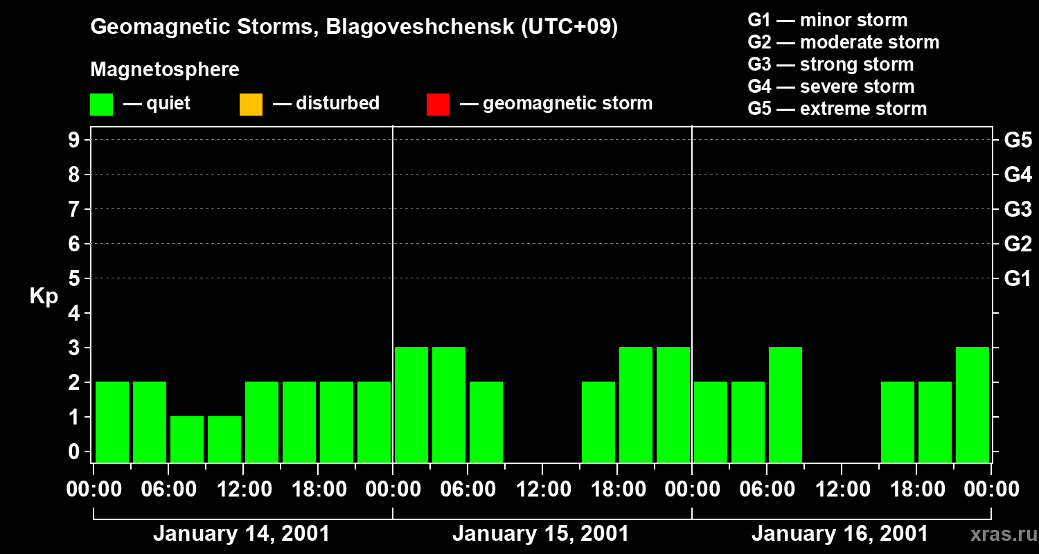 Geomagnetic storms in Blagoveshchensk — Jan 16, 2001