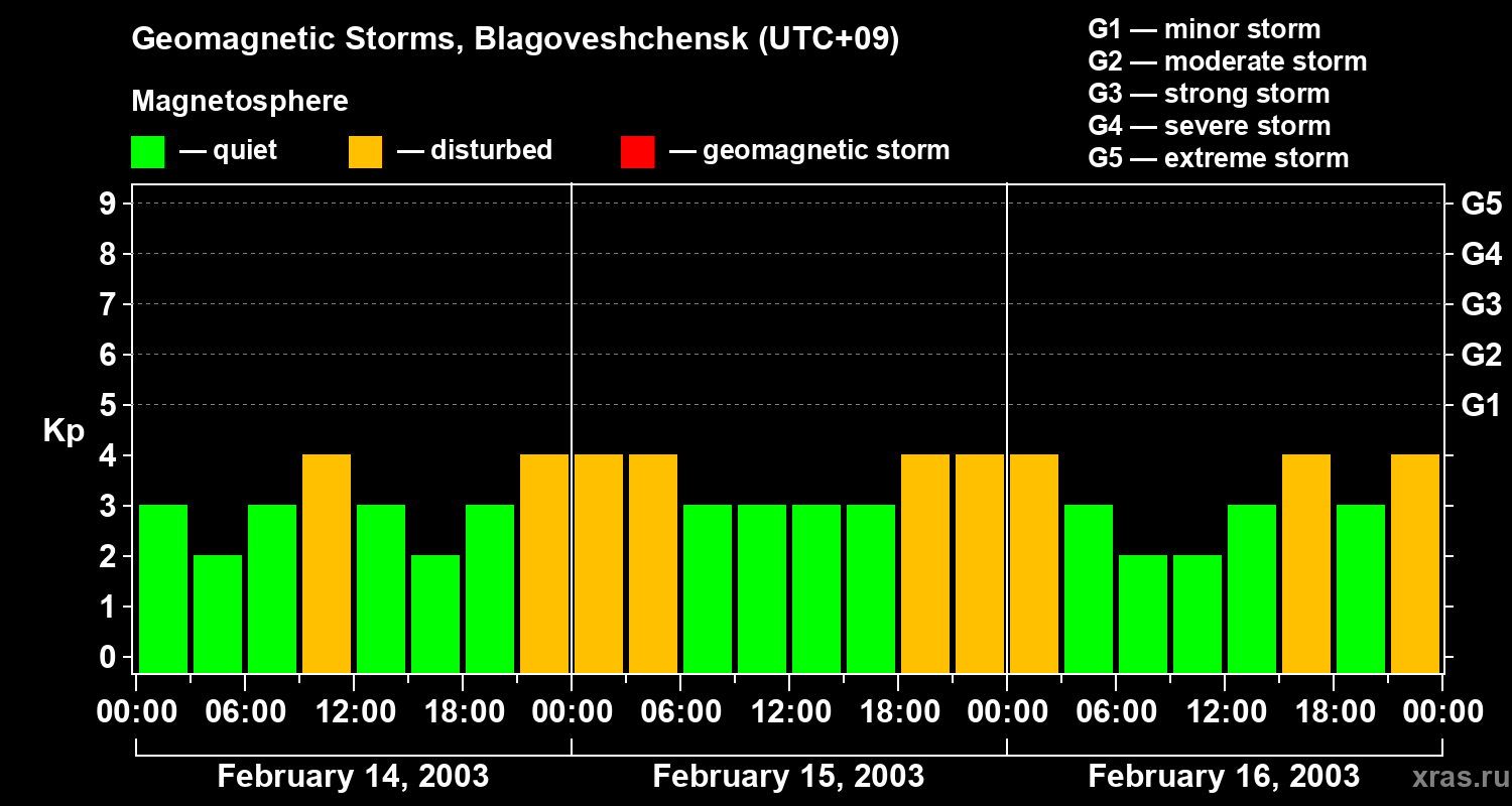 Geomagnetic storms in Blagoveshchensk — Feb 16, 2003