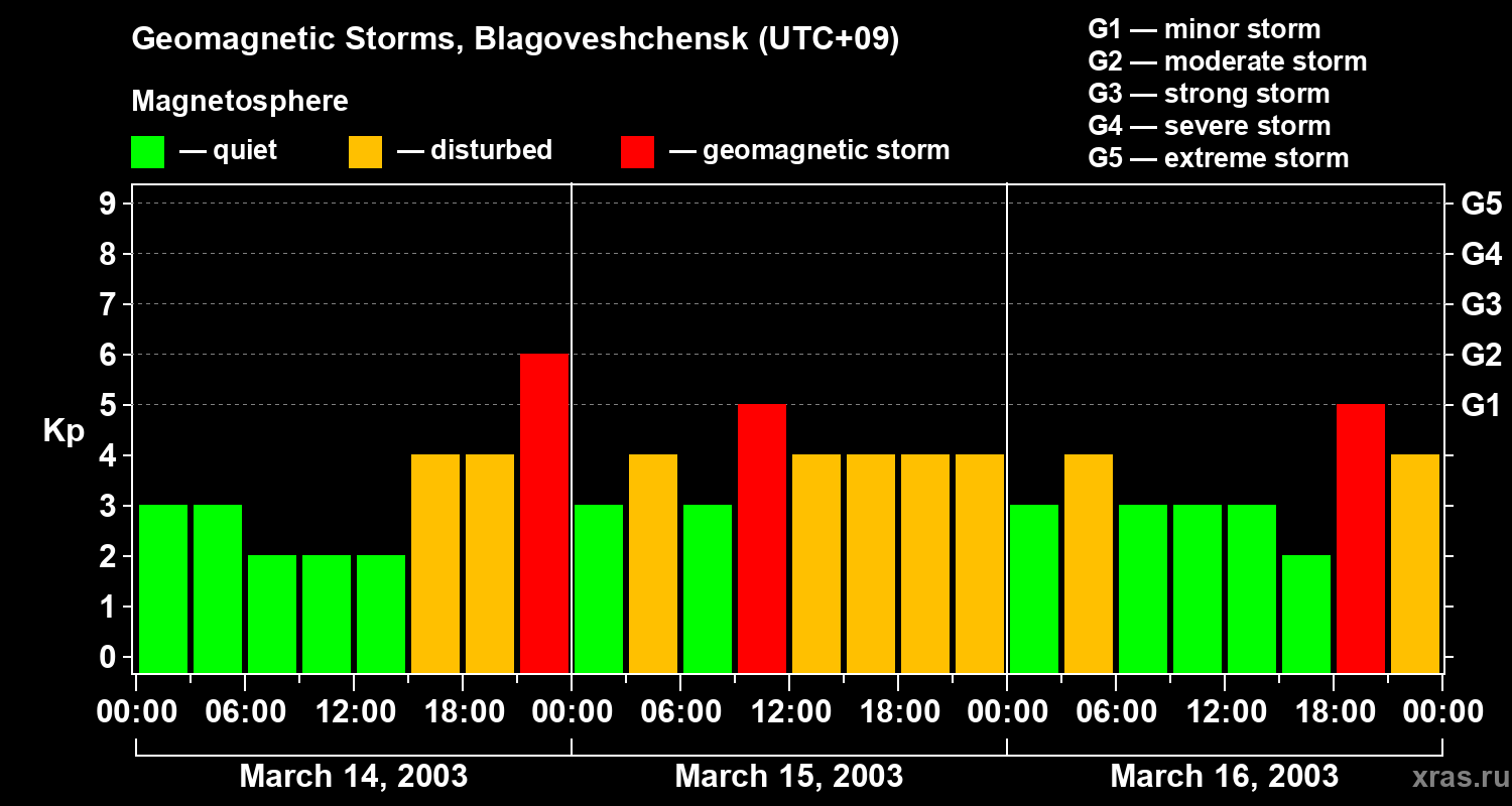 Geomagnetic storms in Blagoveshchensk — Mar 16, 2003