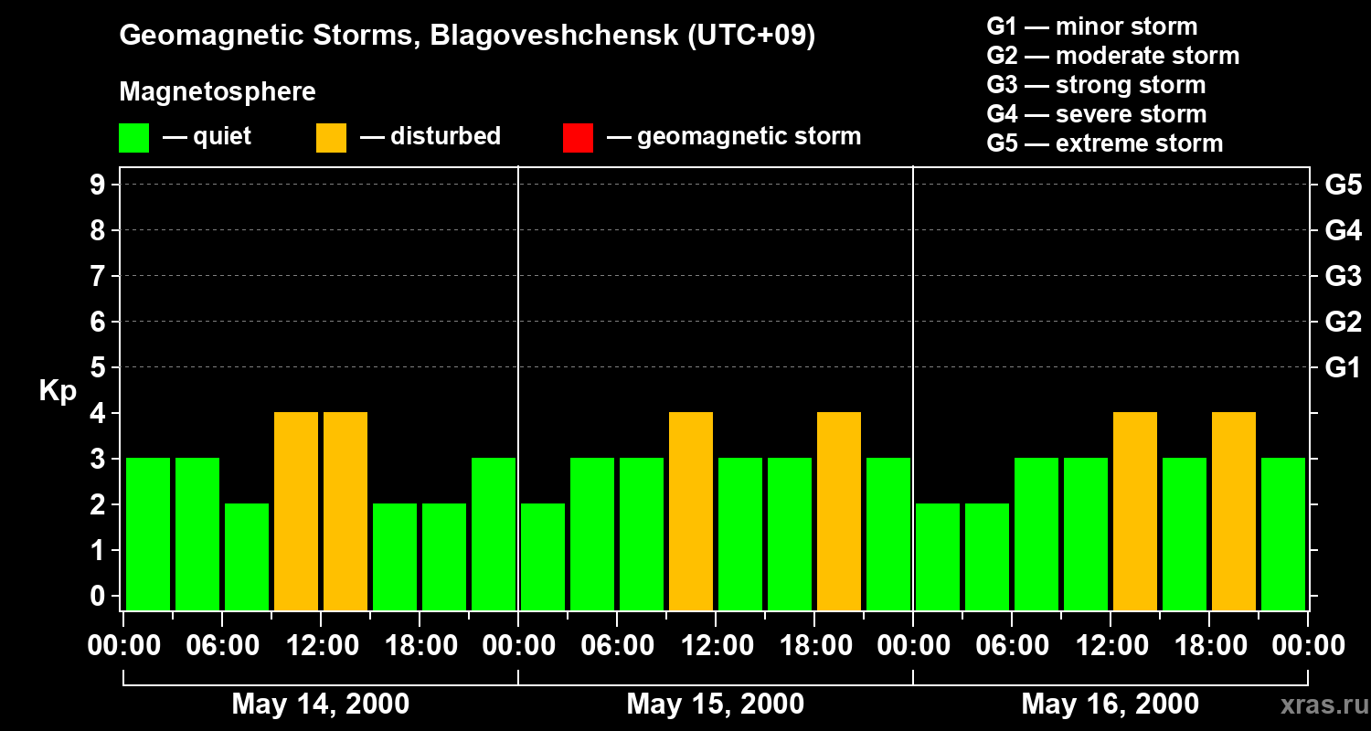 Geomagnetic storms in Blagoveshchensk on May 16, 2000