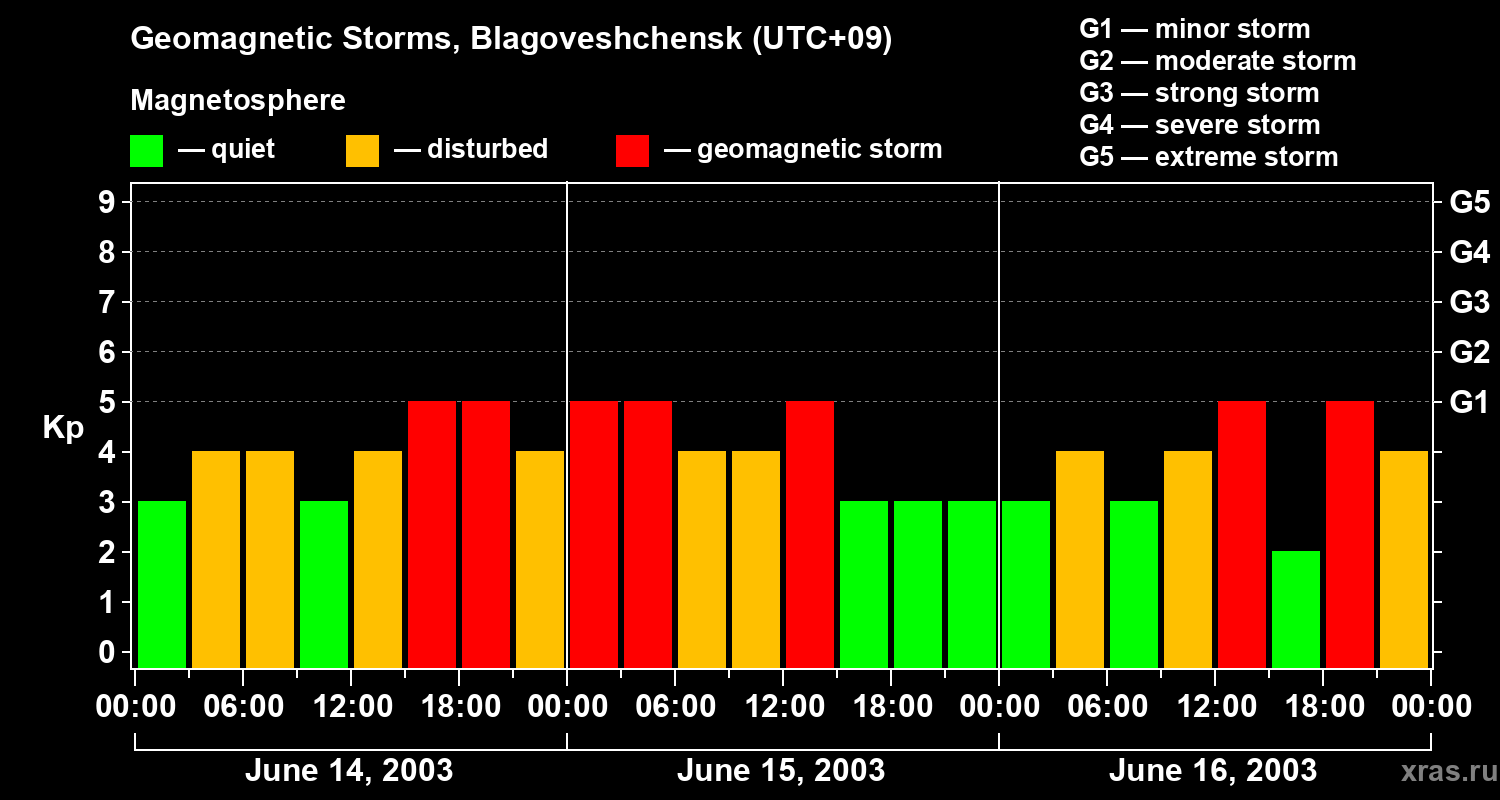 Geomagnetic storms in Blagoveshchensk on Jun 16, 2003