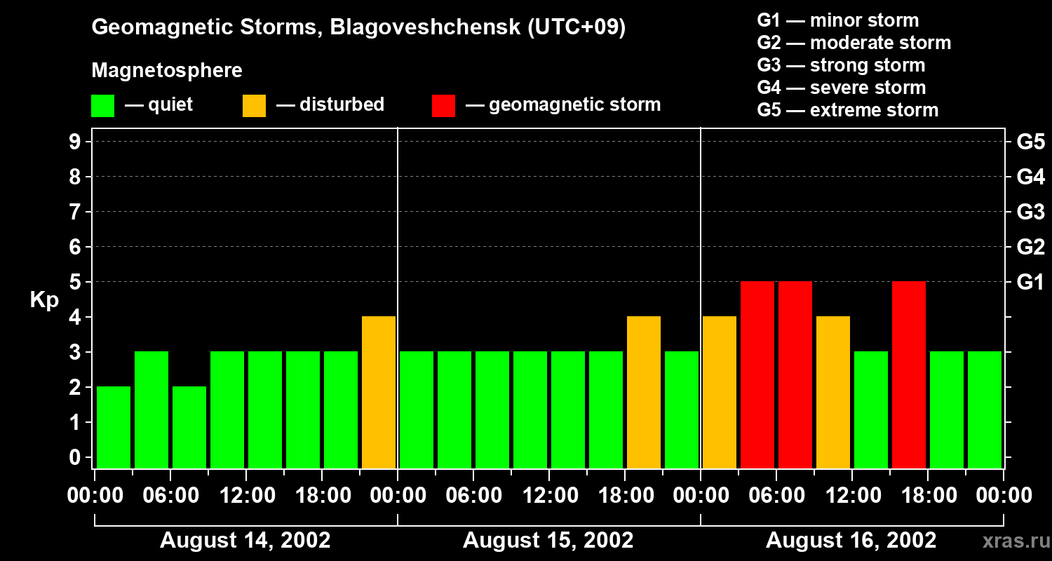 Geomagnetic storms in Blagoveshchensk — Aug 16, 2002