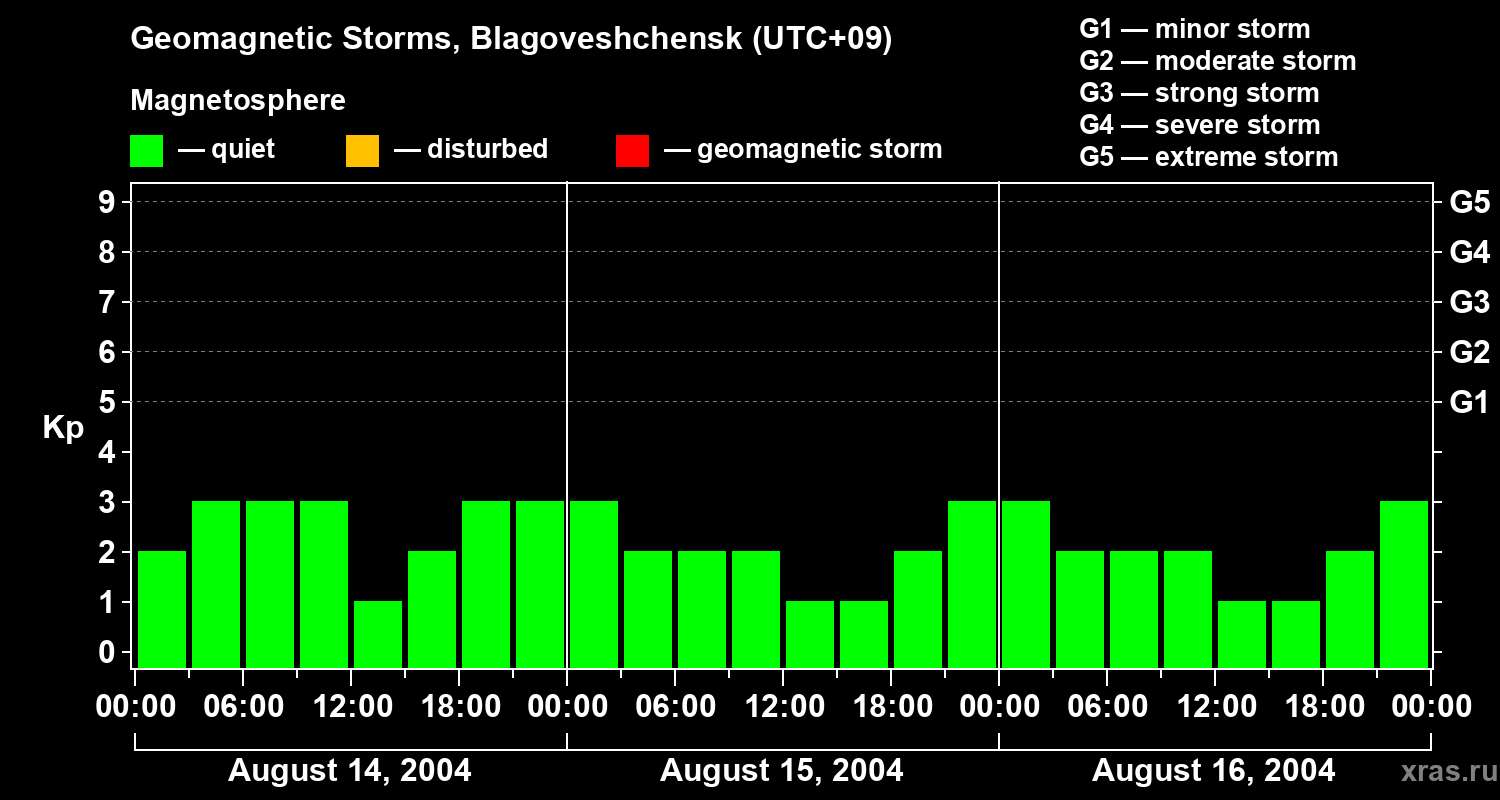Geomagnetic storms in Blagoveshchensk on Aug 16, 2004