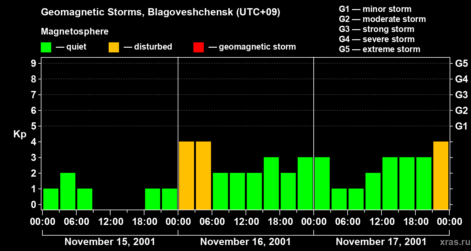 Geomagnetic storms in Blagoveshchensk — Nov 17, 2001