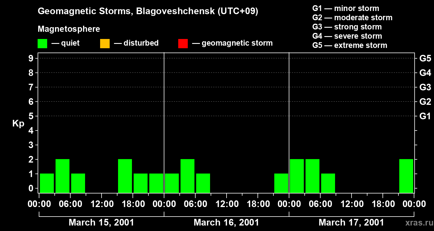 Geomagnetic storms in Blagoveshchensk on Mar 17, 2001