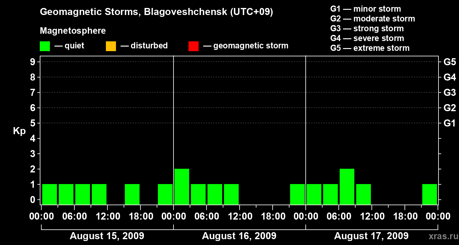Geomagnetic storms in Blagoveshchensk on Aug 17, 2009