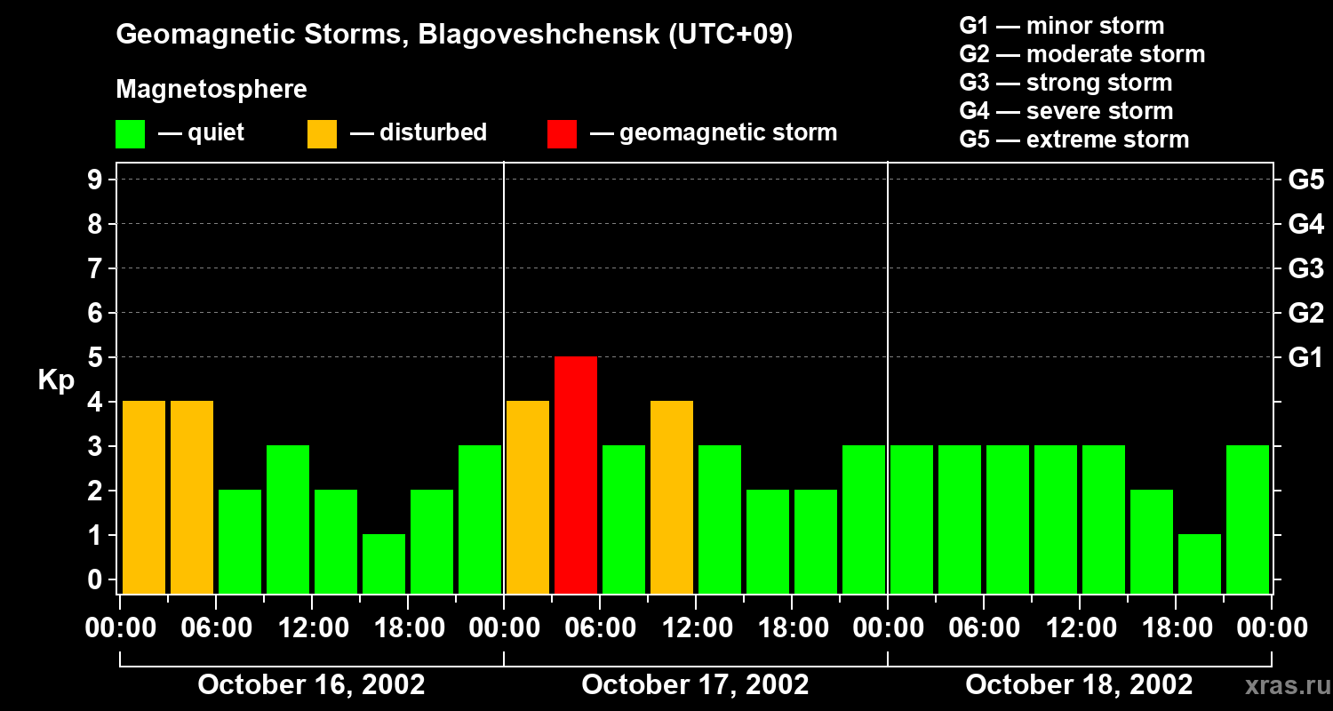 Geomagnetic storms in Blagoveshchensk — Oct 18, 2002