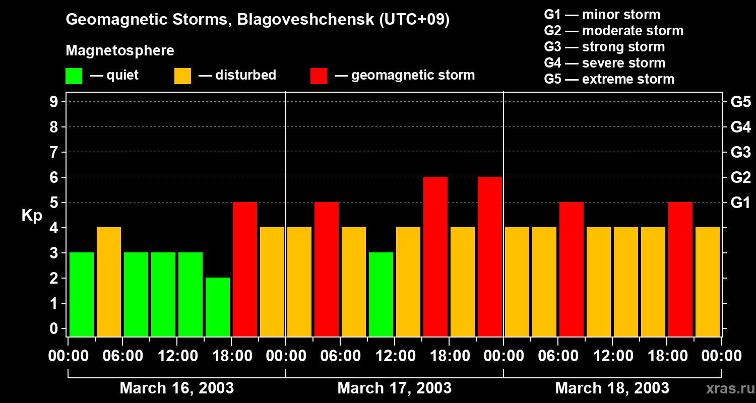 Geomagnetic storms in Blagoveshchensk — Mar 18, 2003