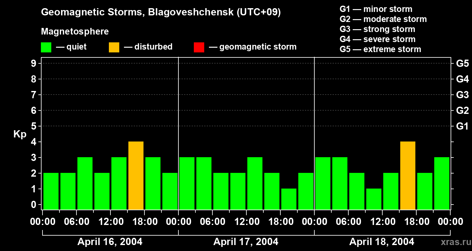 Geomagnetic storms in Blagoveshchensk — Apr 18, 2004