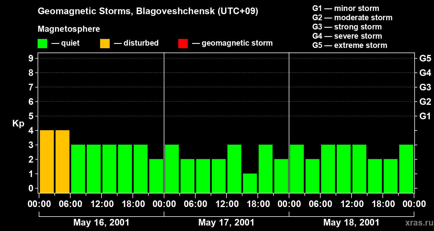 Geomagnetic storms in Blagoveshchensk on May 18, 2001