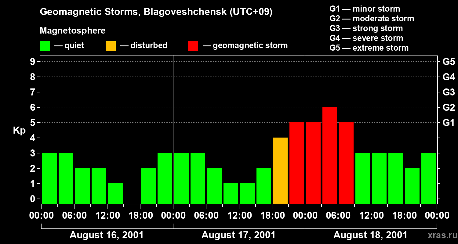 Geomagnetic storms in Blagoveshchensk — Aug 18, 2001