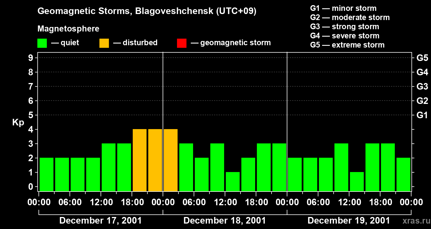 Geomagnetic storms in Blagoveshchensk — Dec 19, 2001